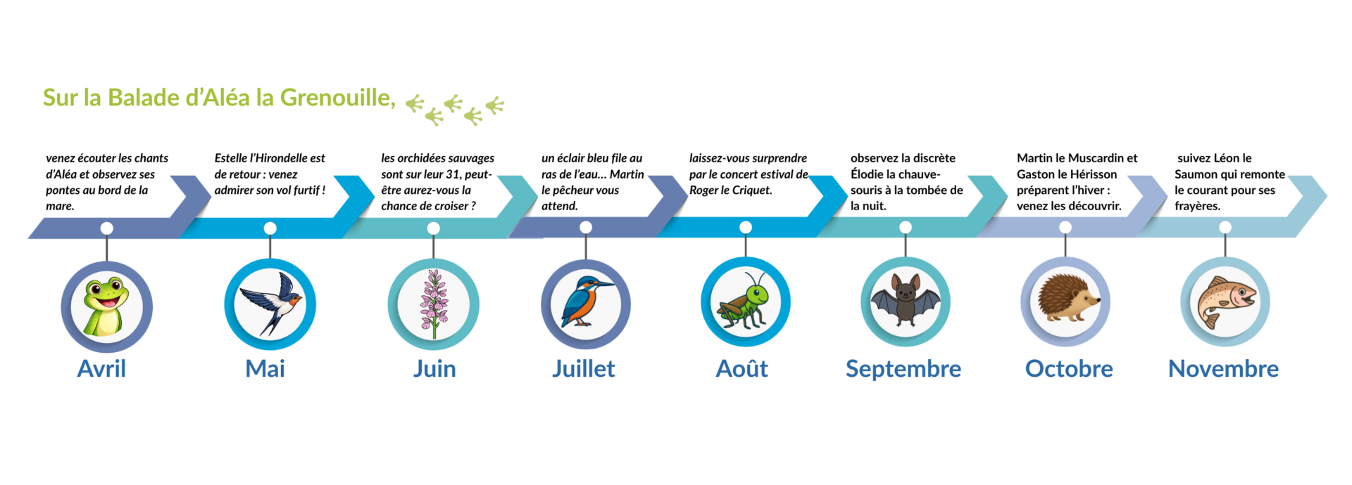 Alors suivez les traces d’Aléa la Grenouille et laissez-vous guider à travers les secrets du vivant.